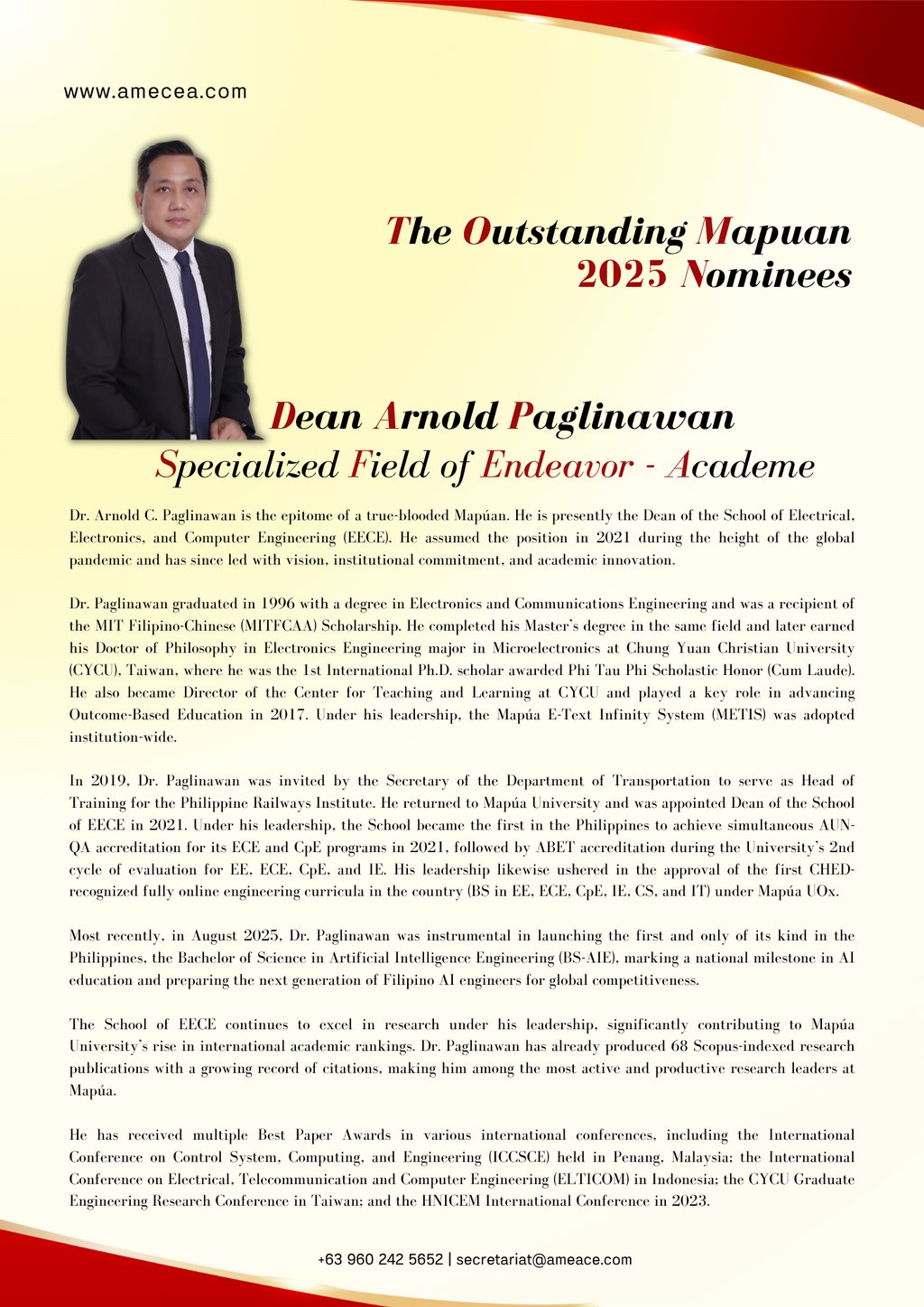 Honoring excellence, leadership, and innovation, the The Outstanding Mapúan nominees represent the pinnacle of achievement in their fields. These individuals embody the Mapúan legacy of shaping industries and advancing society through expertise and dedication.