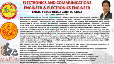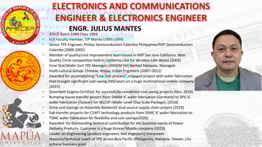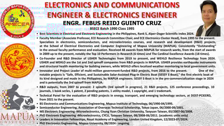 We are proud to announce the Batch 2 awardees of the Outstanding ECE Alumni, recognized for their exceptional achievements and contributions to Electronics Engineering and beyond.