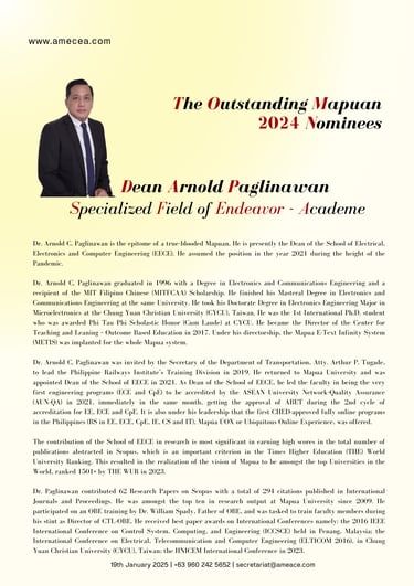 Honoring excellence, leadership, and innovation, the 2024 The Outstanding Mapúan nominees represent the pinnacle of achievement in their fields. These individuals embody the Mapúan legacy of shaping industries and advancing society through expertise and dedication.
