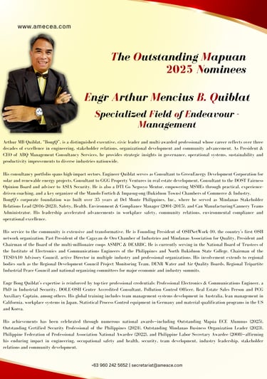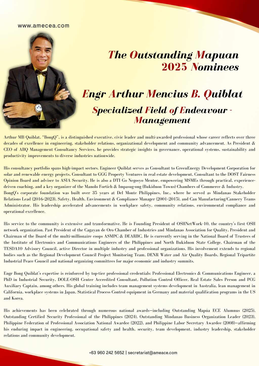 Honoring excellence, leadership, and innovation, the The Outstanding Mapúan nominees represent the pinnacle of achievement in their fields. These individuals embody the Mapúan legacy of shaping industries and advancing society through expertise and dedication.